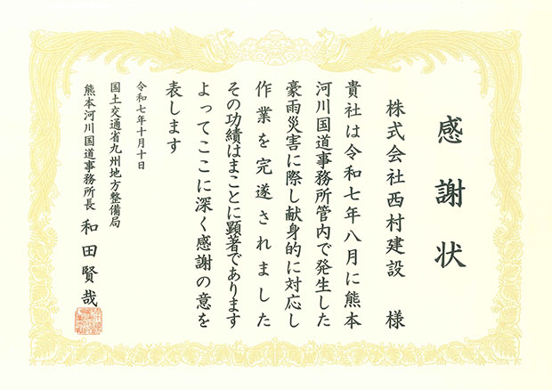 令和7年8月熊本豪雨災害における支援活動感謝状